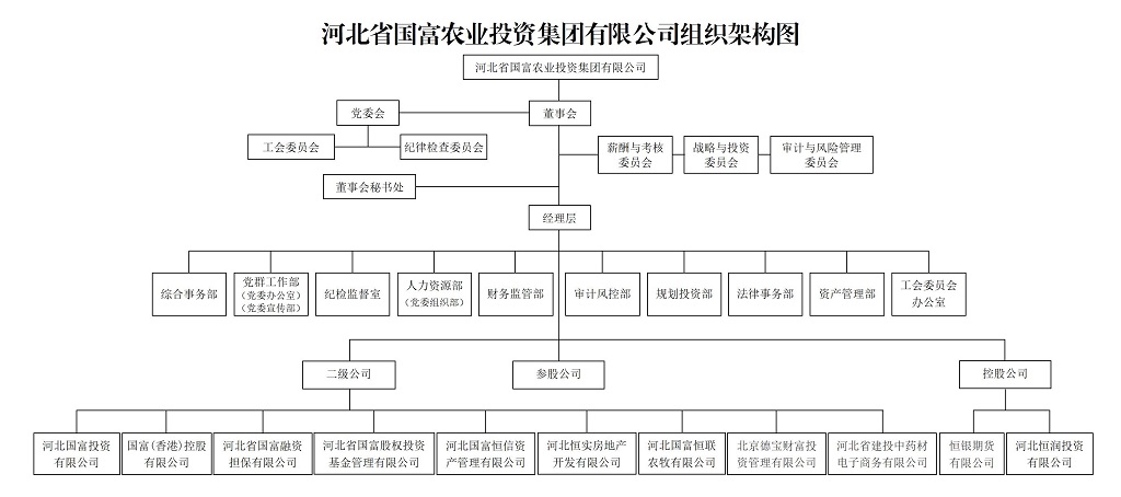 河北省國富農(nóng)業(yè)投資集團(tuán)有限公司成立于1992年,前身為河北省經(jīng)濟(jì)開發(fā)投資公司。2001年11月,經(jīng)河北省人民政府批準(zhǔn),重組設(shè)立為河北省國富農(nóng)業(yè)投資集團(tuán)有限公司,注冊(cè)資本3.34億元。2017年3月,按照省政府安排全面劃轉(zhuǎn)至省國資委管理,是河北省國資委授權(quán)的競(jìng)爭(zhēng)類國有資產(chǎn)授權(quán)經(jīng)營機(jī)構(gòu)。2024年7月,經(jīng)省委、省政府同意,省國資委決定將河北國富投資劃轉(zhuǎn)至河北建投集團(tuán)管理。