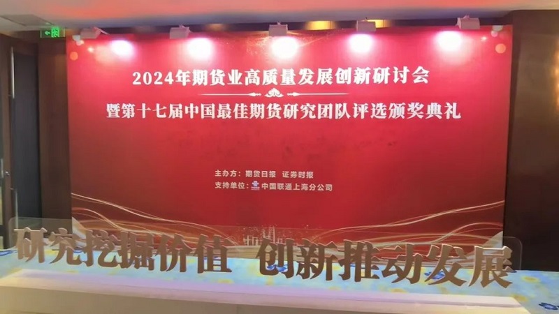 2024年11月27日上午,期貨日報社聯(lián)合證券時報社共同主辦的“2024年期貨業(yè)高質(zhì)量發(fā)展創(chuàng)新研討會暨第十七屆中國最佳期貨研究團隊評選頒獎典禮”在南京舉行。