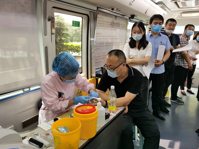 8月13日上午,“河青號(hào)”愛(ài)心獻(xiàn)血車開(kāi)進(jìn)了國(guó)富投資集團(tuán)總部,雖然烈日炎炎,驕陽(yáng)似火,卻仍阻擋不住干部職工傳遞愛(ài)心的熱情?;顒?dòng)現(xiàn)場(chǎng),30余名職工代表在醫(yī)護(hù)人員的引導(dǎo)下,依次填寫(xiě)登記表、測(cè)血壓、抽血化驗(yàn)、采集血樣,整個(gè)過(guò)程秩序井然。獻(xiàn)血隊(duì)伍中既有黨員干部,又有普通職工,既有剛剛?cè)肼毜那嗄陠T工,也有工作多年的老同志,他們用同樣的方式表達(dá)著自己的愛(ài)心,奉獻(xiàn)著自己的真情。最終共22名符合條件的職工獻(xiàn)血成功,獻(xiàn)血總量達(dá)6800CC,他們用滴滴熱血詮釋了奉獻(xiàn)精神,凝聚了赤誠(chéng)之力,承載了生命希望,為省會(huì)無(wú)償獻(xiàn)血事業(yè)再次貢獻(xiàn)力量。
