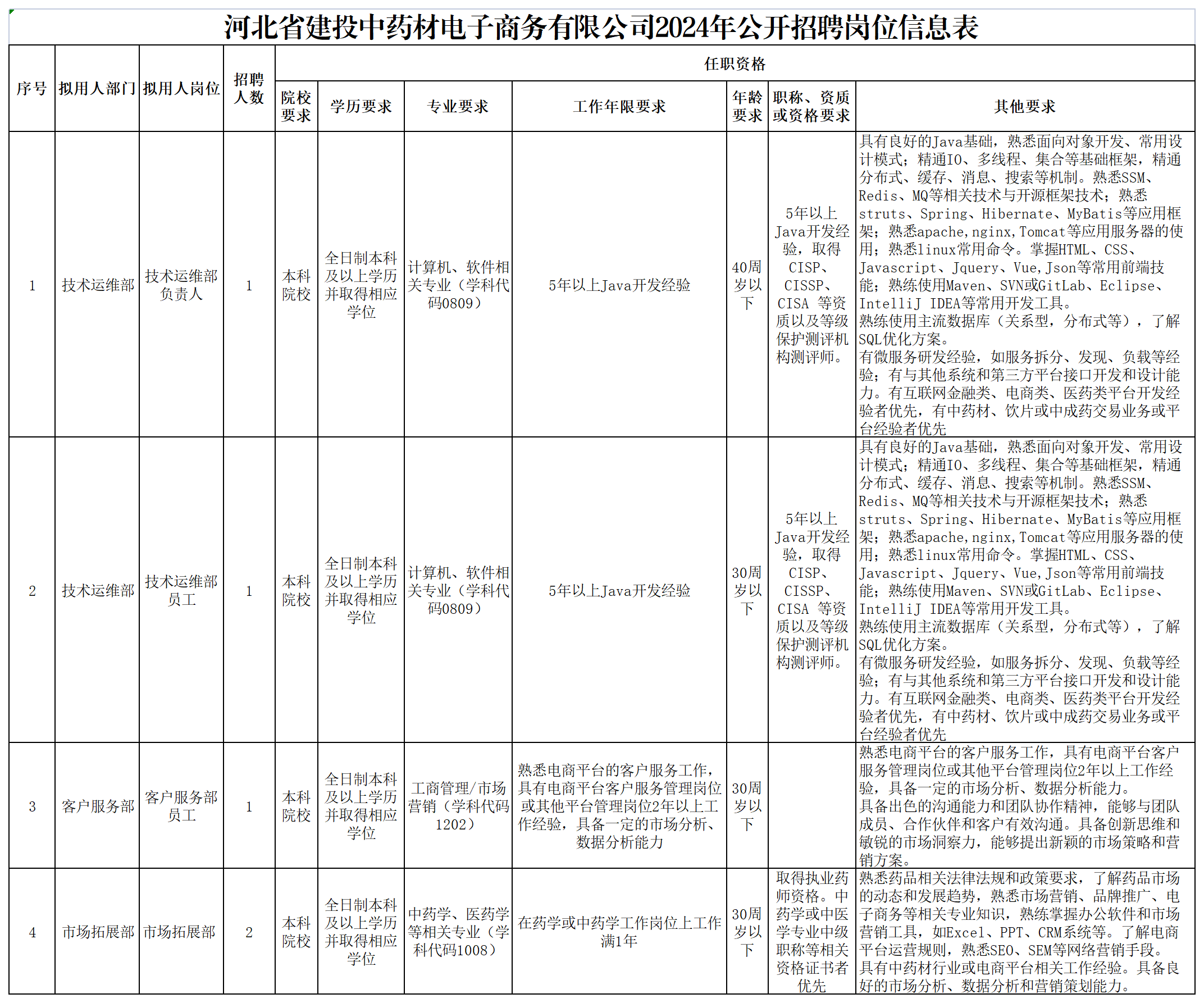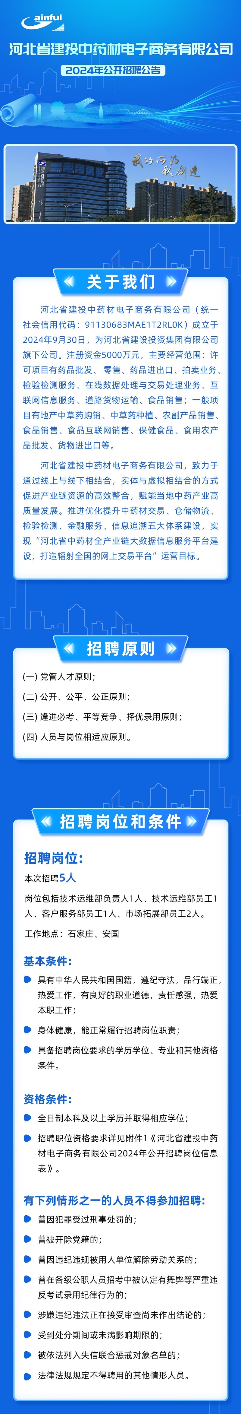 河北省建投中藥材電子商務(wù)有限公司2024年公開招聘公告